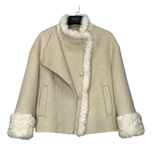 拼接羊羔毛雙面羊毛大衣G8113A,夏梵納|40年服飾